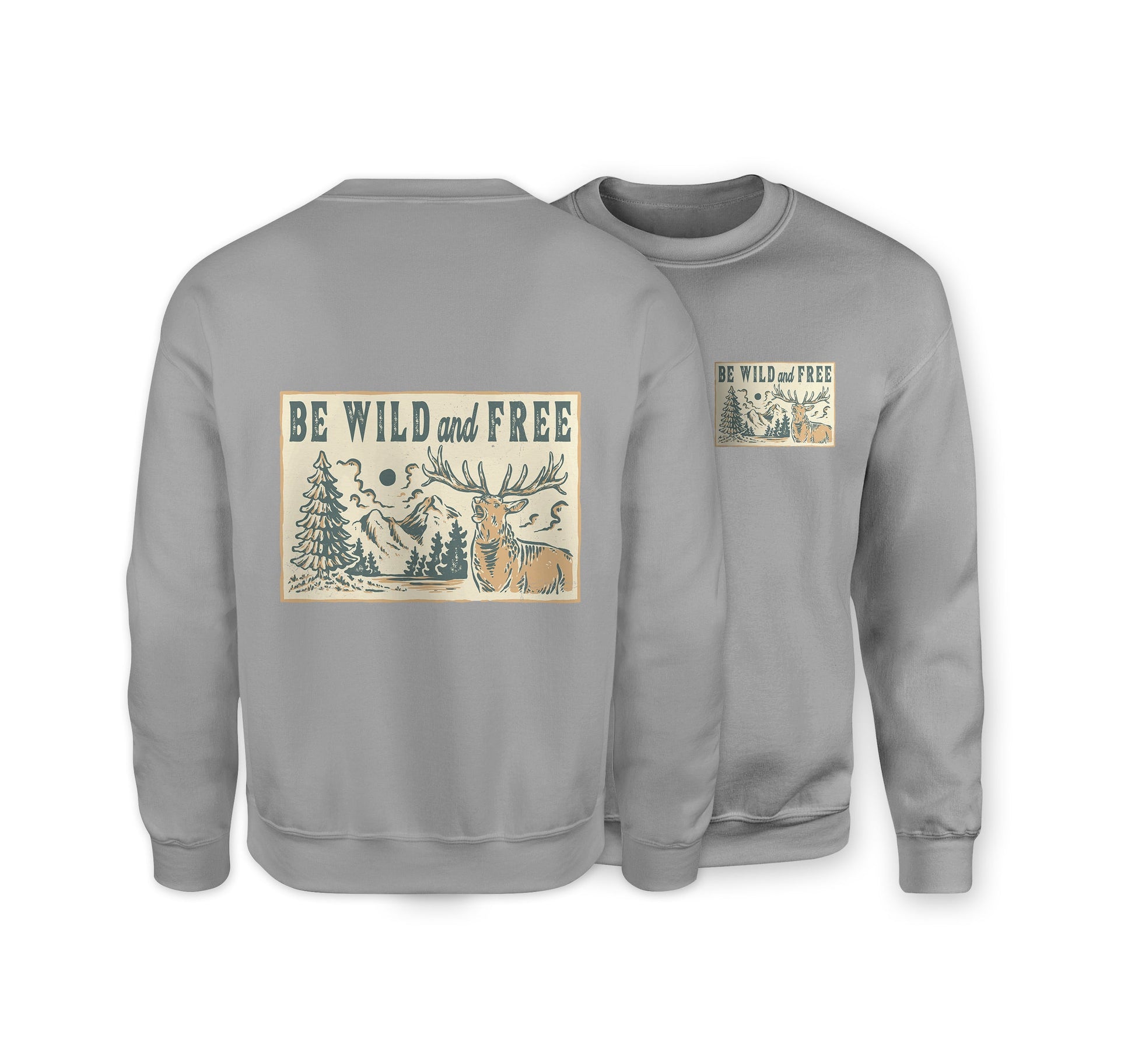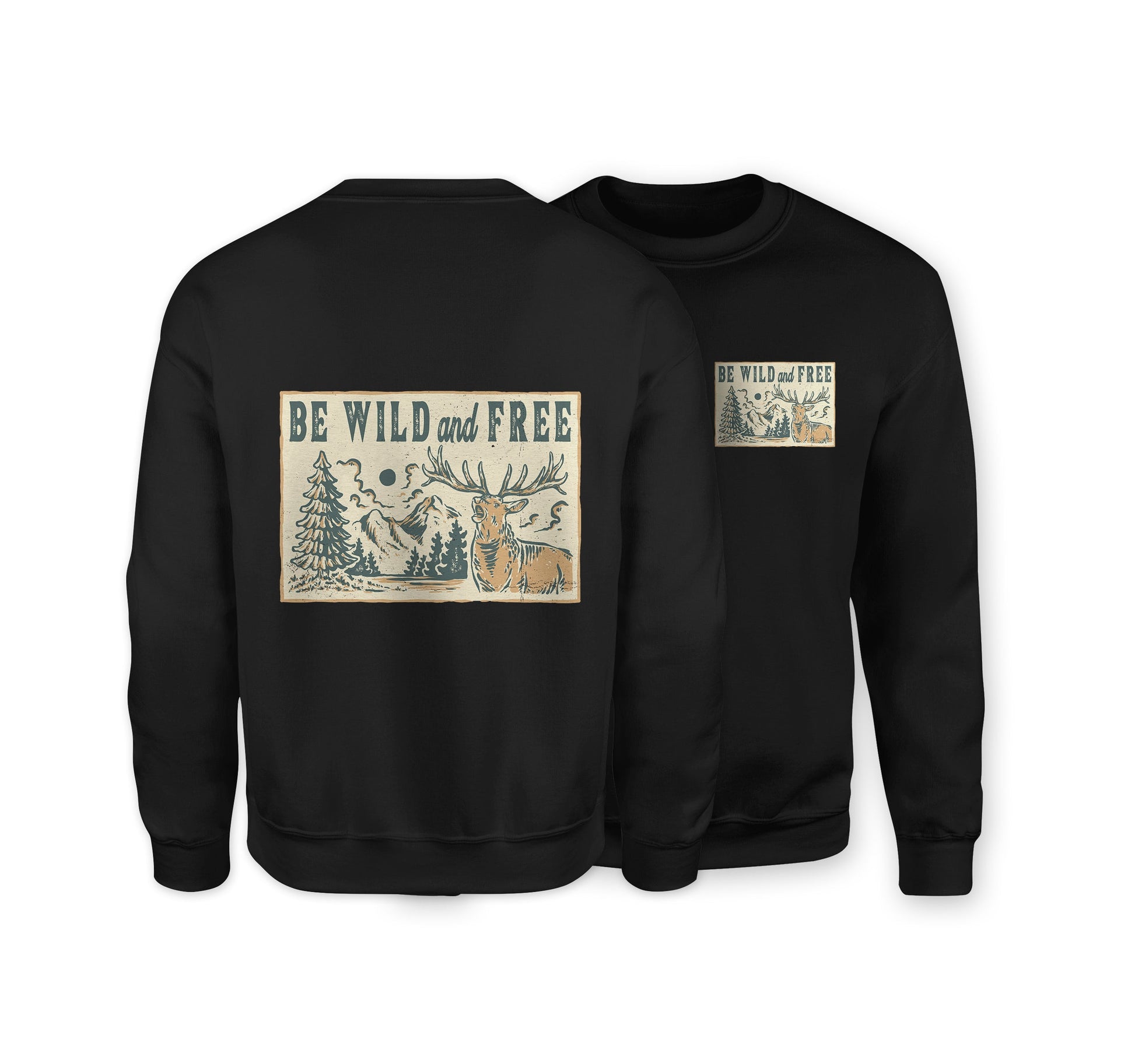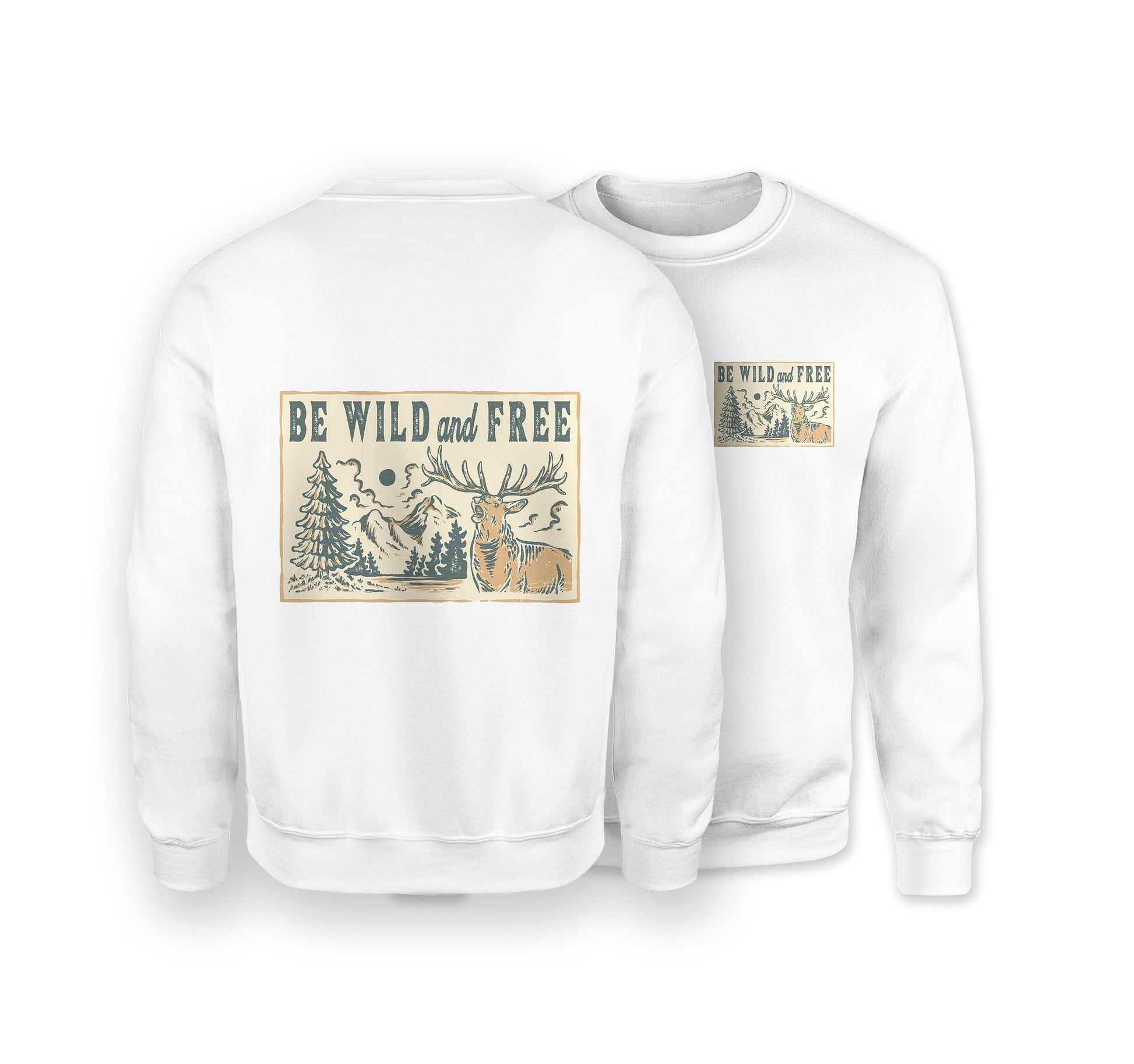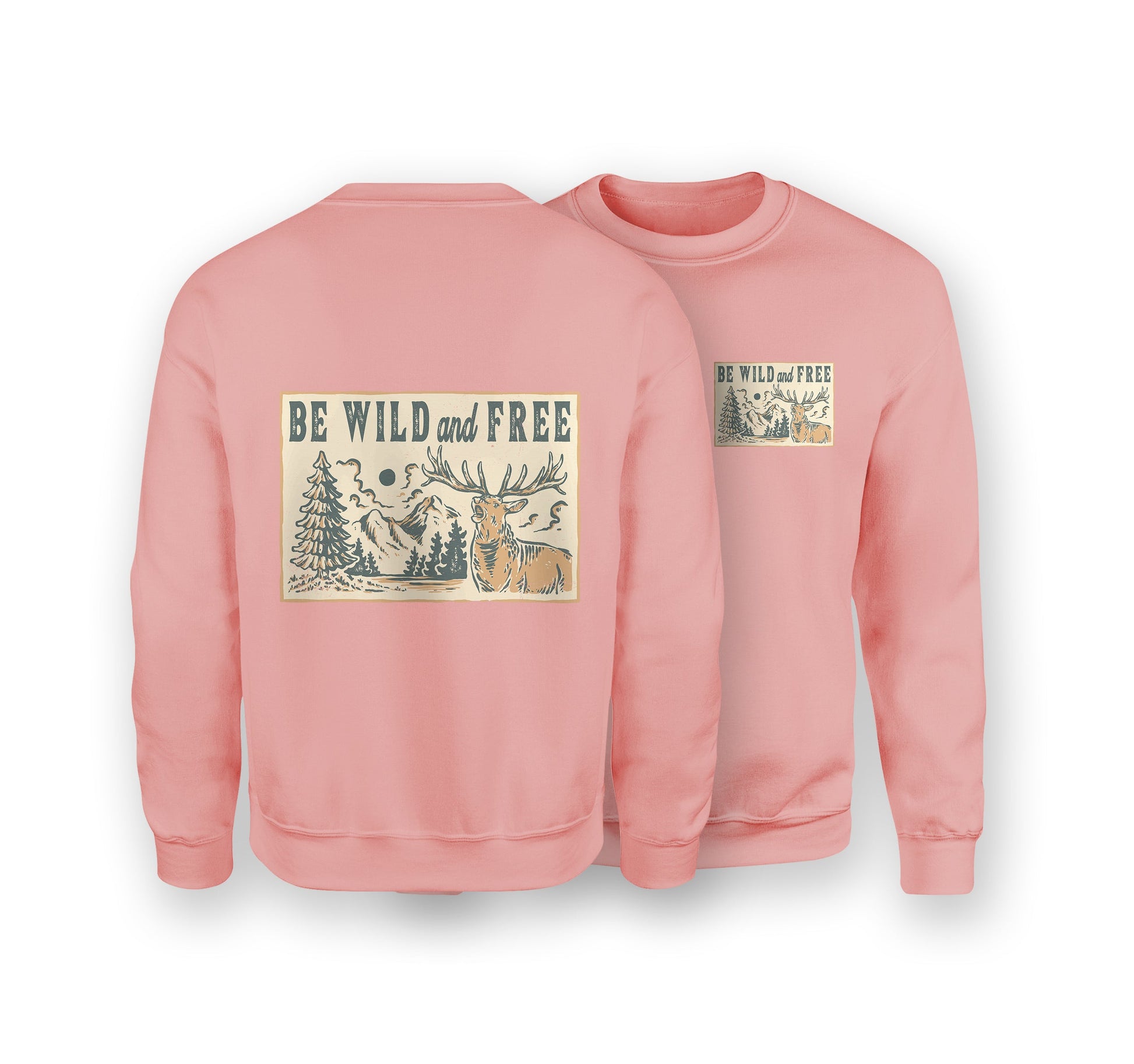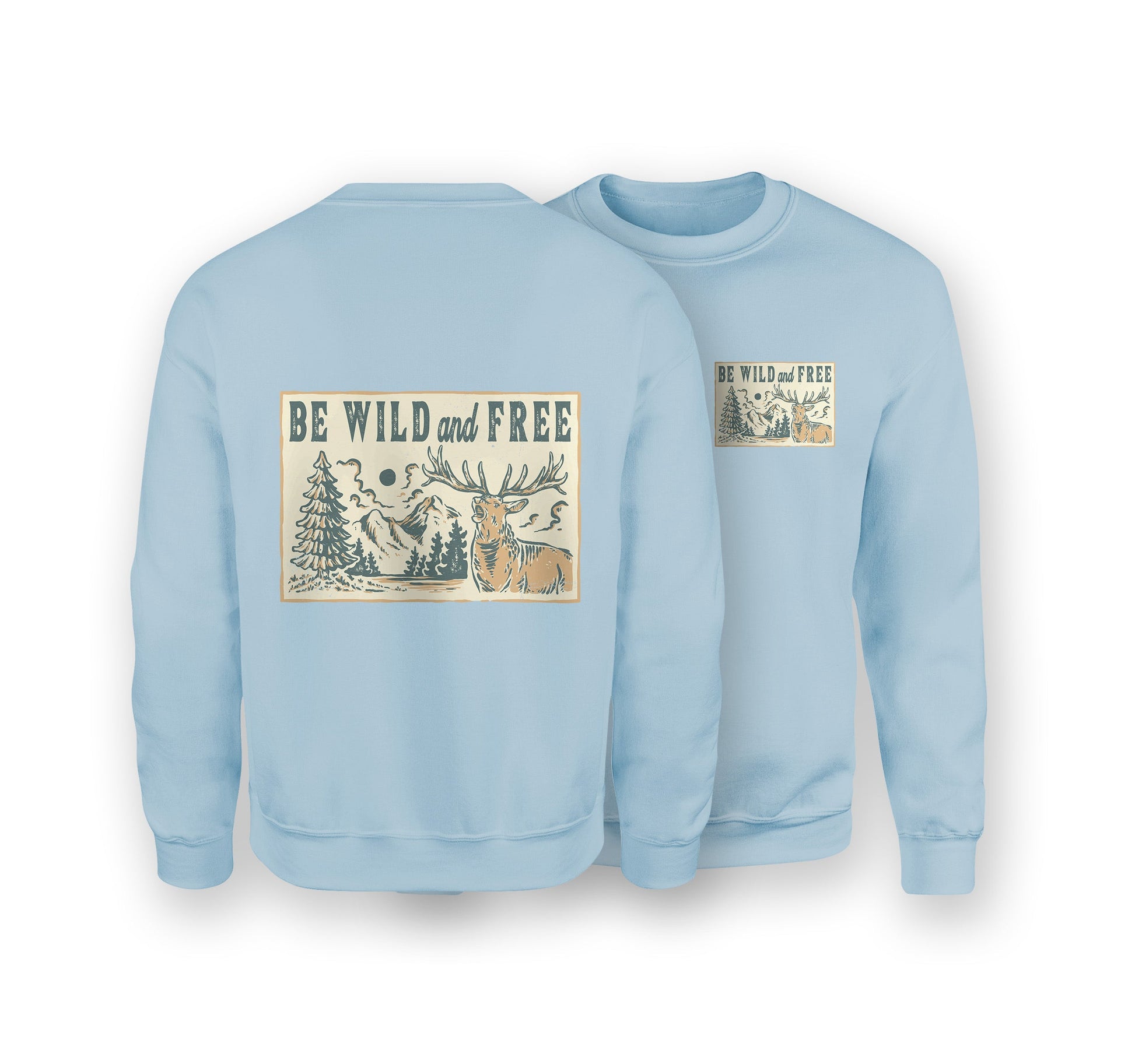 - Be Wild & Free Sweatshirt; Beautiful design printed on the back with pocket print on the front