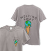 - Melting Away Tee; Melting away design printed on the back with pocket print on the front