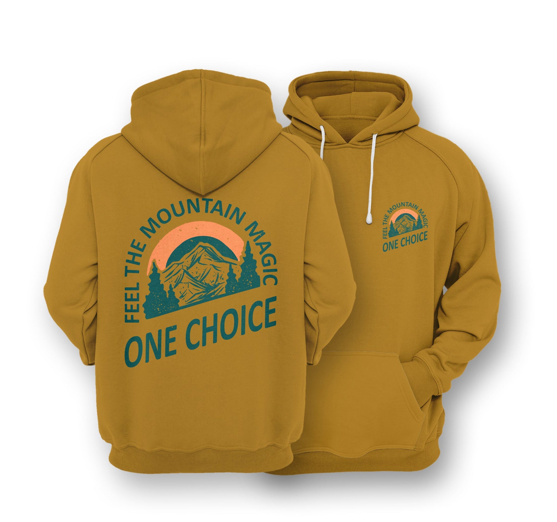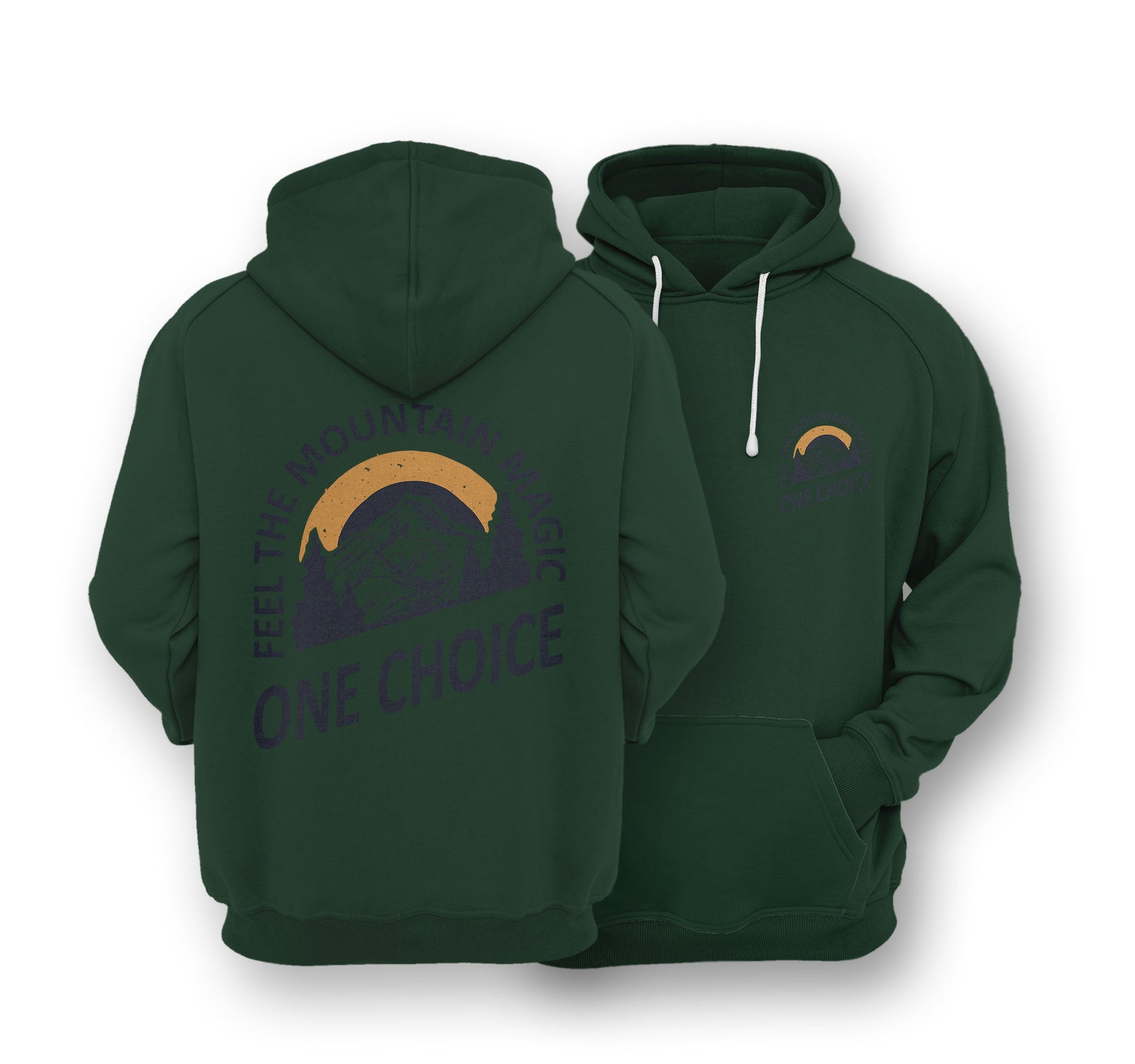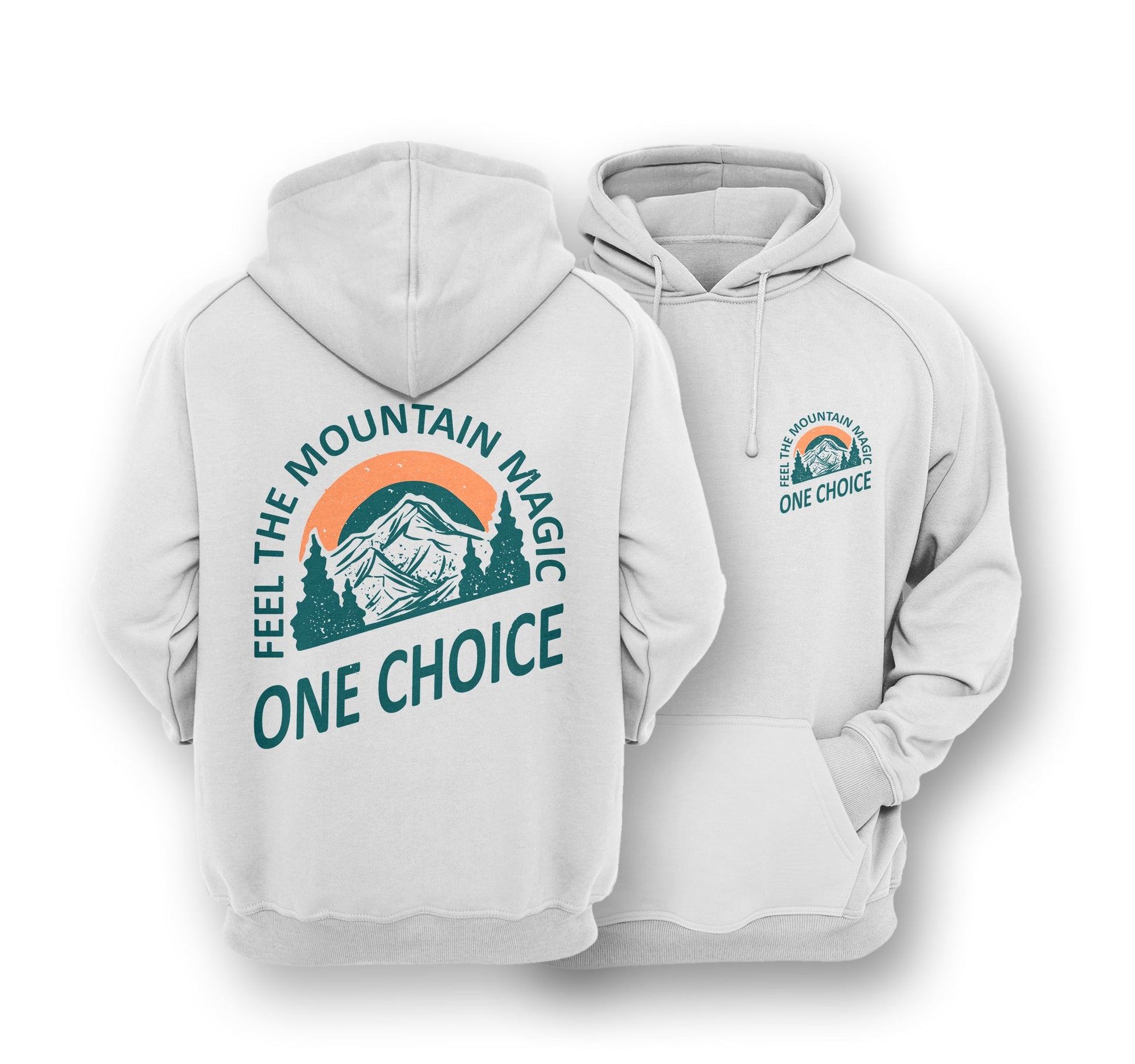 - Sustainable Hoodie - Feel The Mountain Magic; Beautiful design printed on the back with pocket print on the front