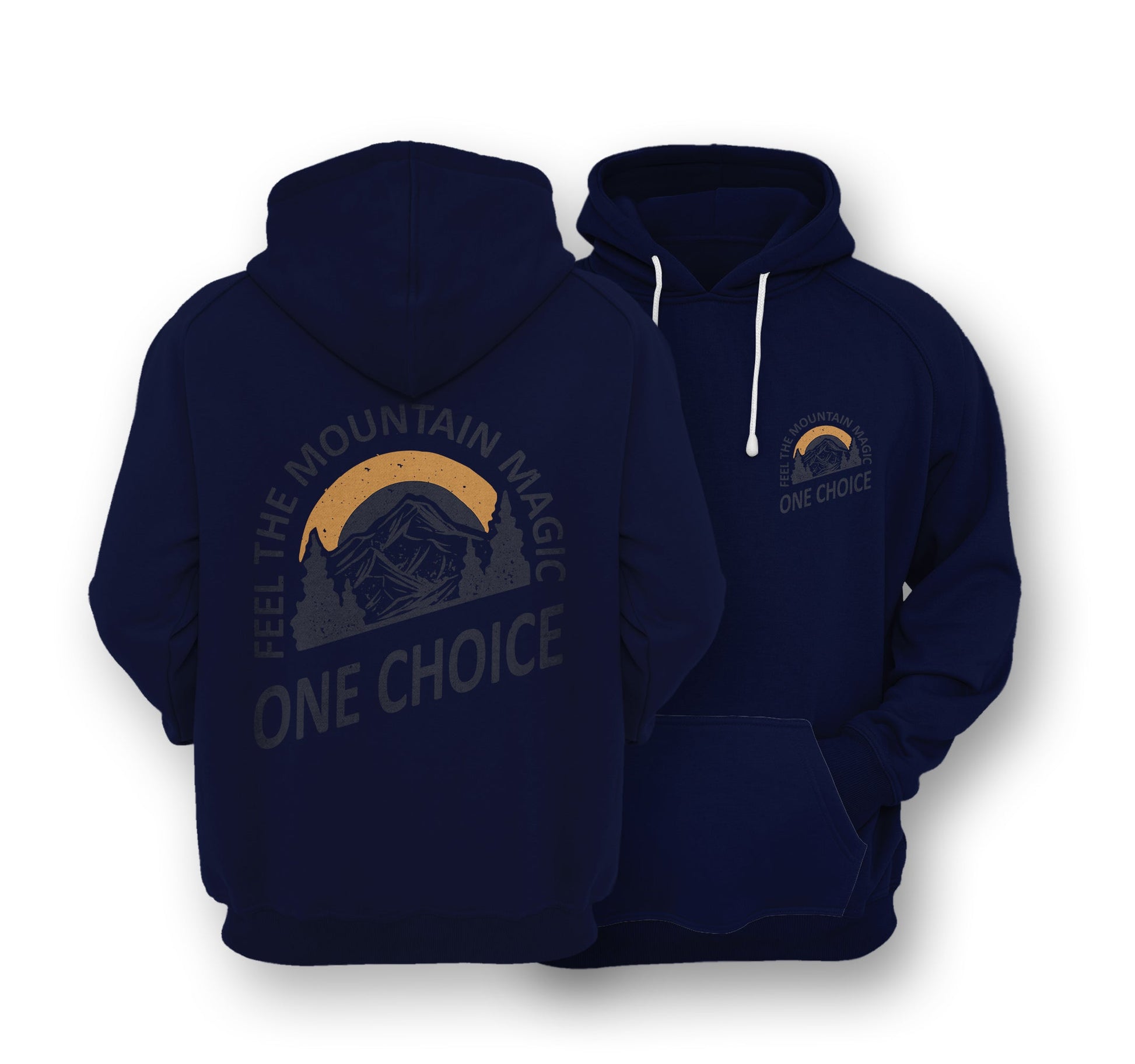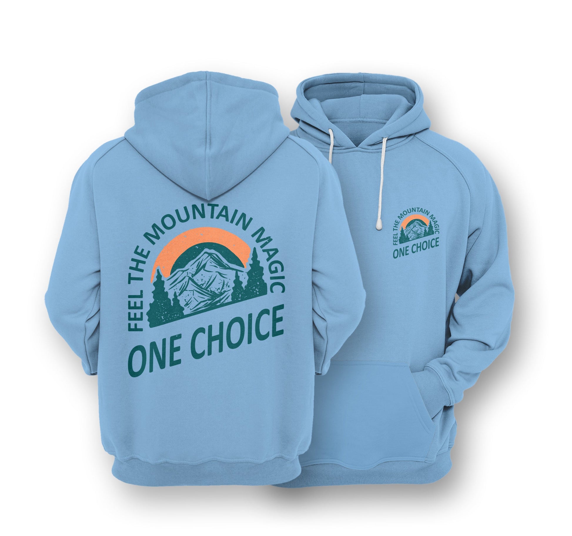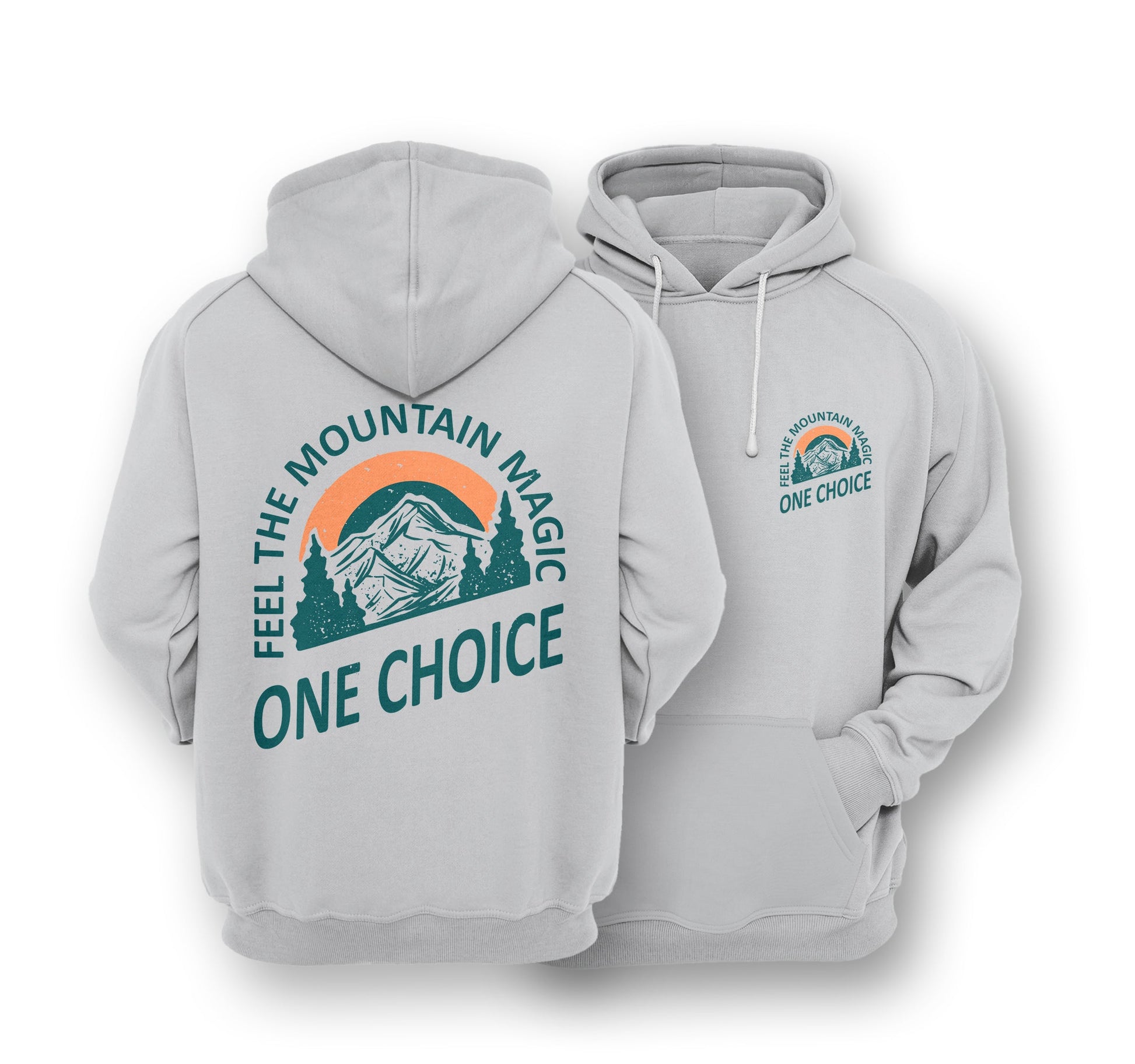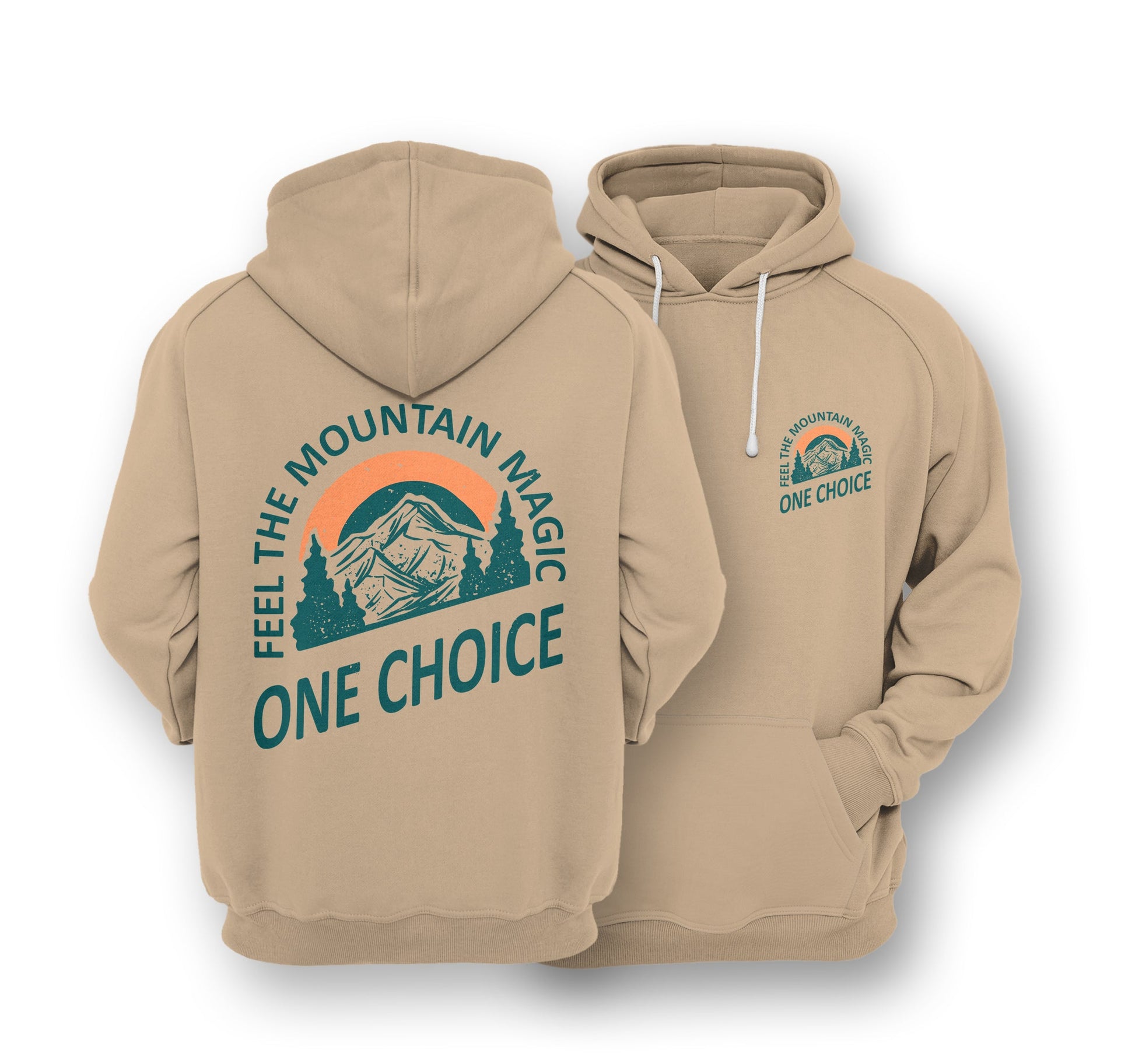 - Sustainable Hoodie - Feel The Mountain Magic; Beautiful design printed on the back with pocket print on the front