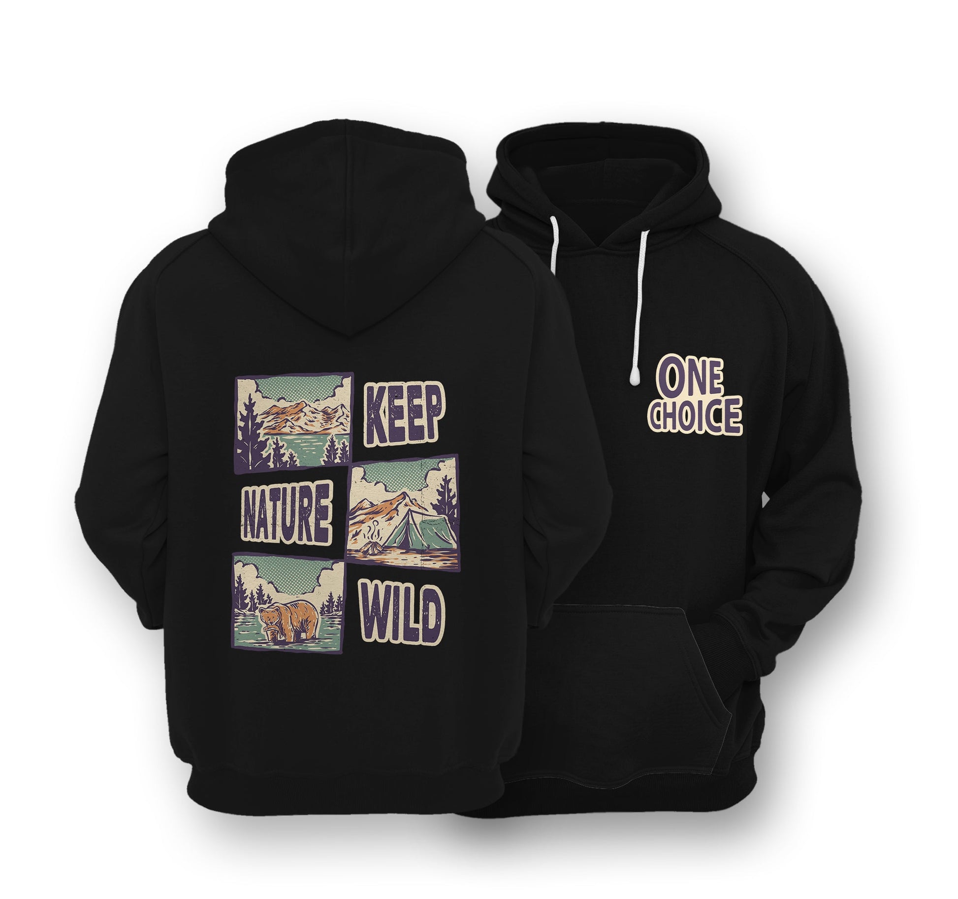 - Keep Nature Wild Hoodie; Beautiful design printed on the back with pocket print on the front
