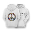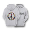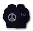 - Patterned Peace Sign Hoodie; Beautiful design printed on the back with pocket print on the front