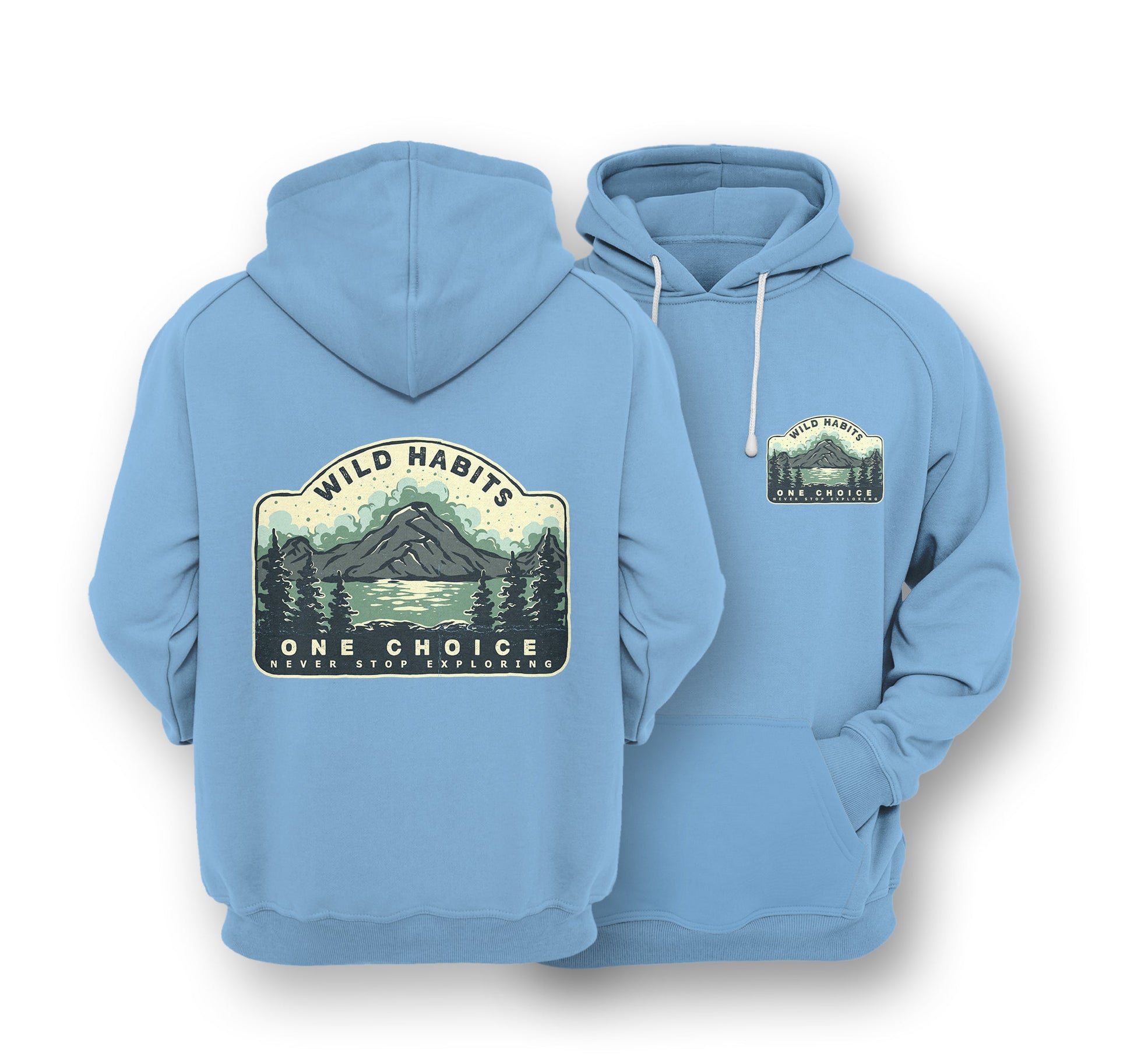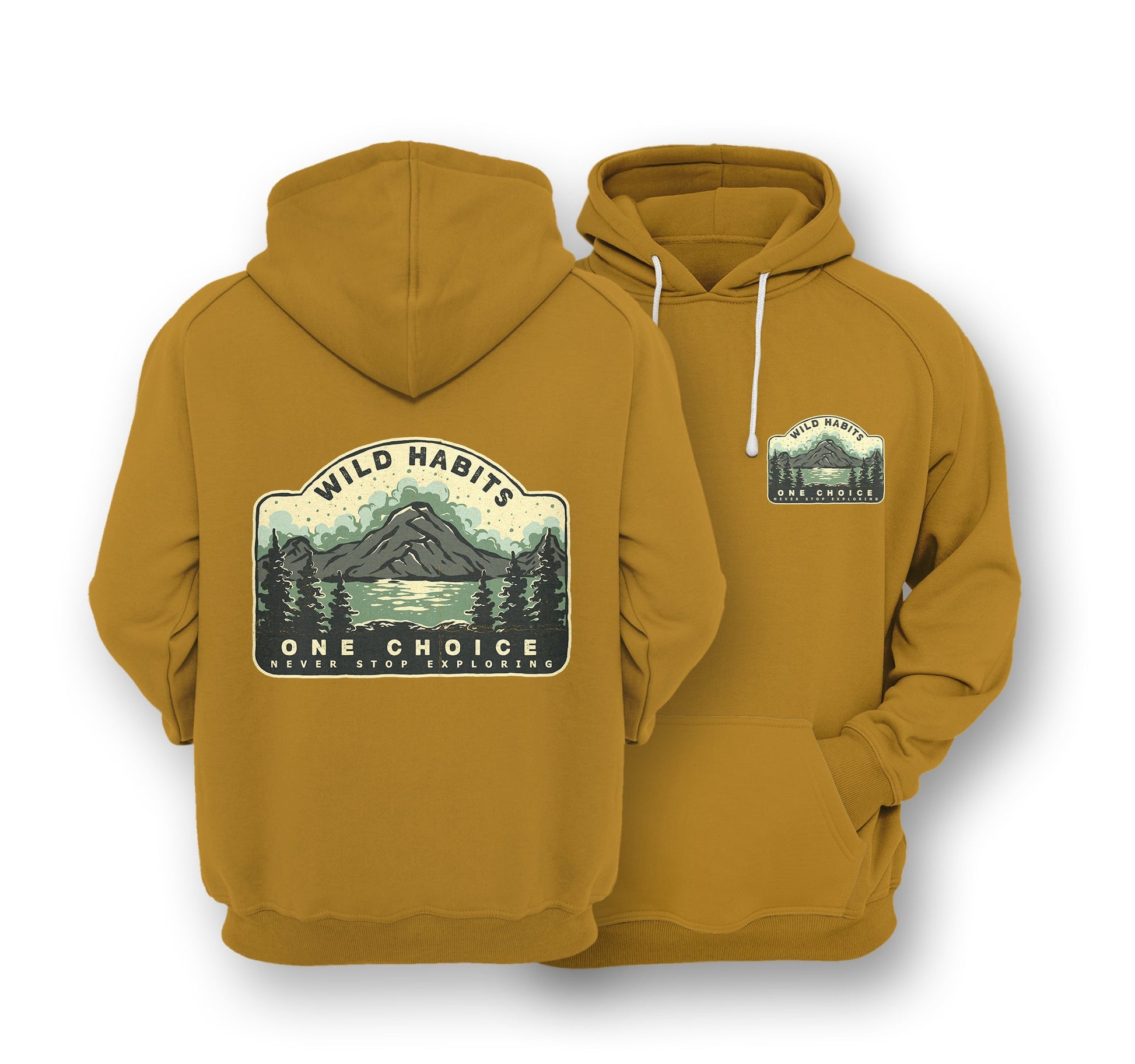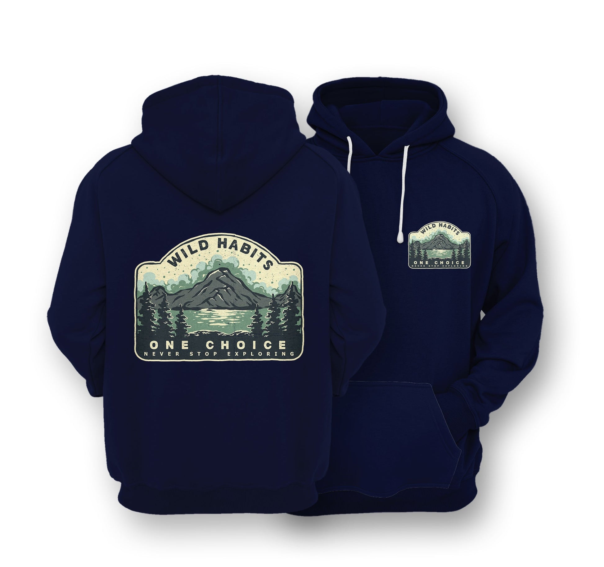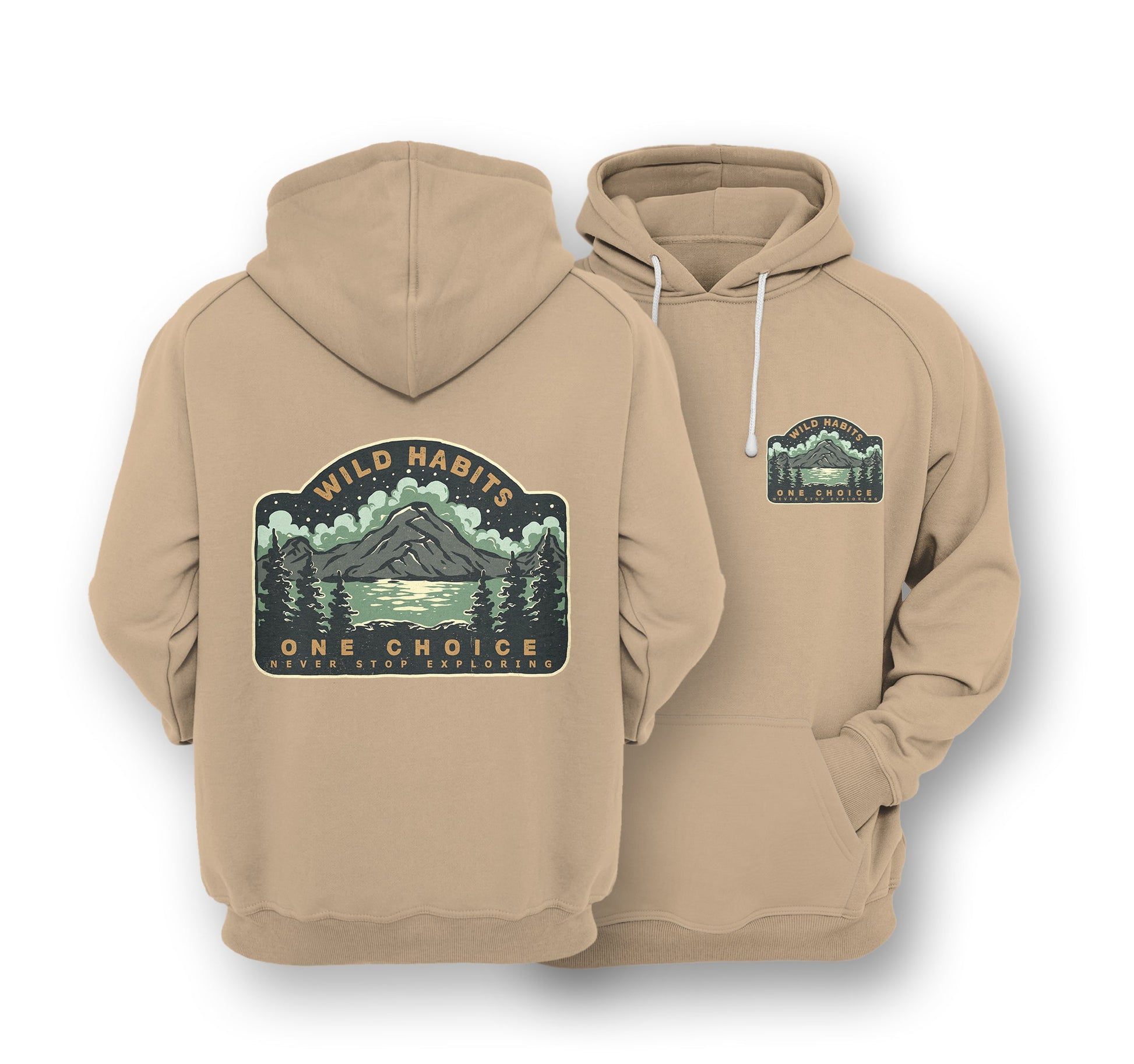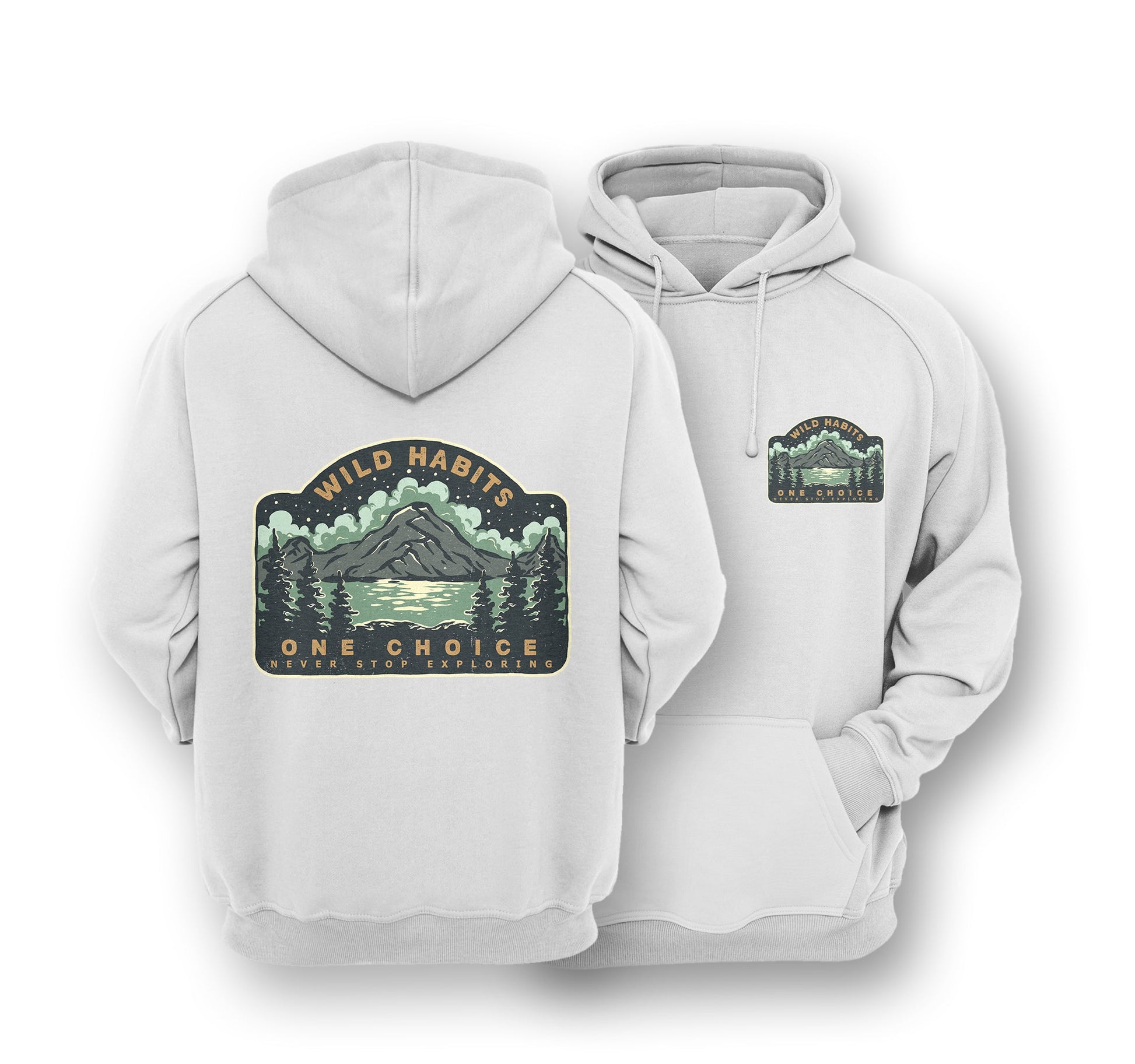 - Wild Habits Hoodie; Beautiful design printed on the back with pocket print on the front