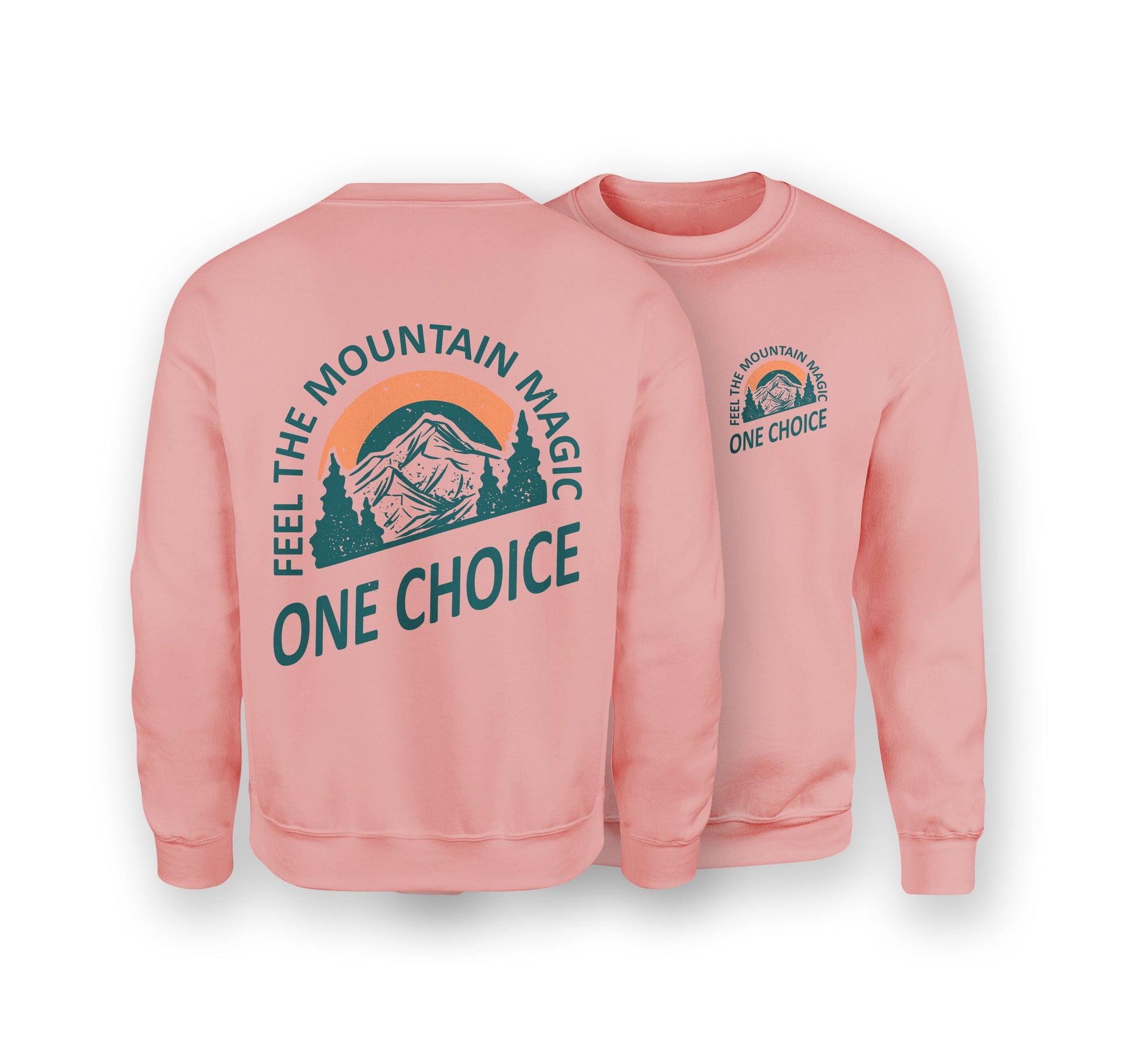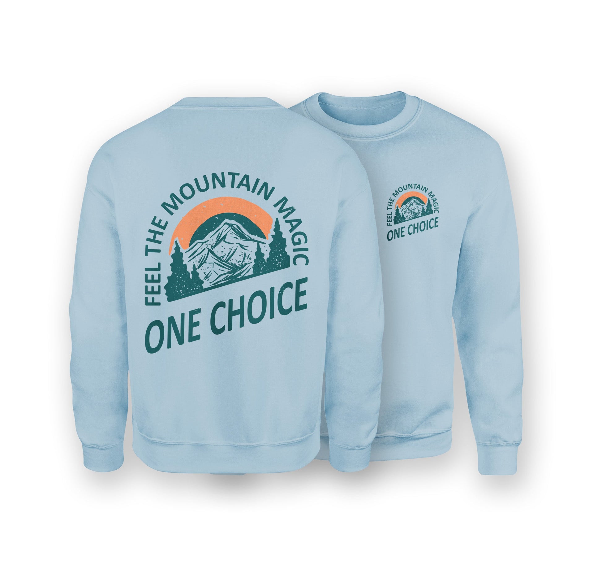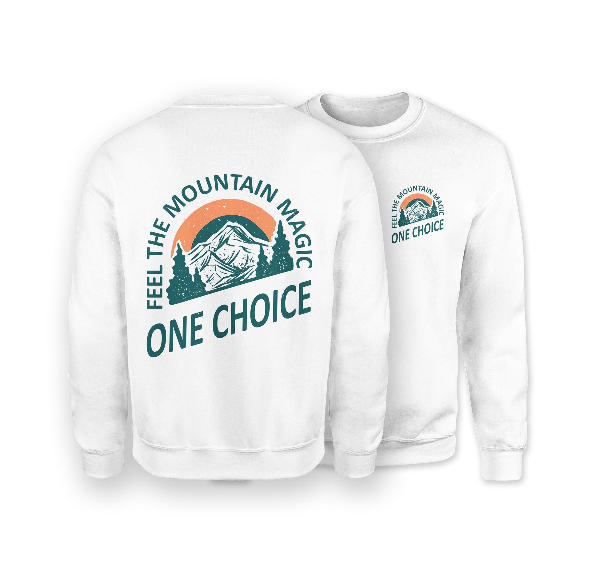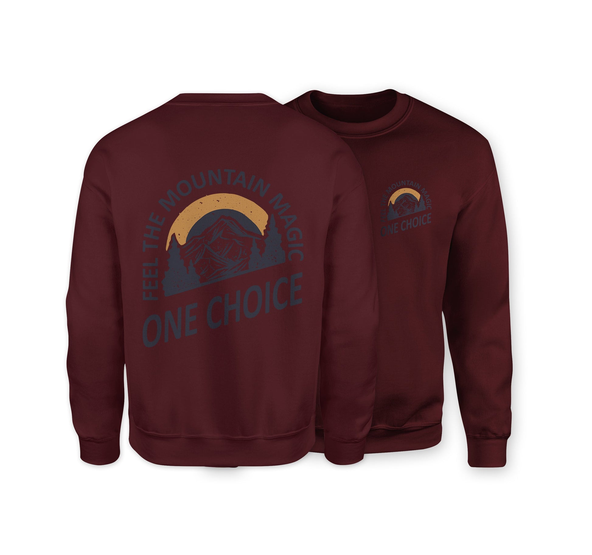- Sustainable Sweatshirt - Feel The Mountain Magic; Beautiful design printed on the back with pocket print on the front